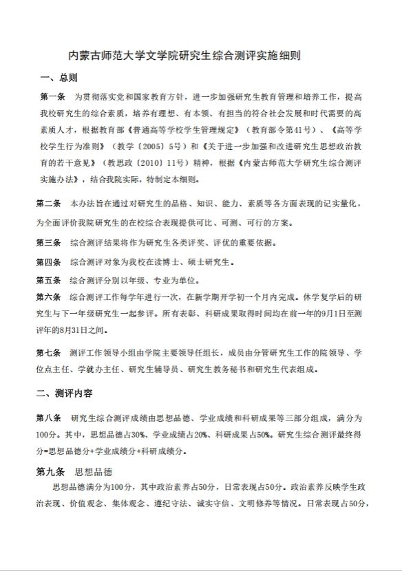 球友会研究生综合测评实施细则